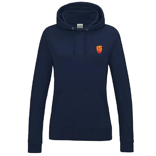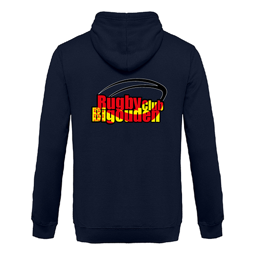 Sweat à capuche doublée sérigraphié. Coupe féminine. Poche kangourou. Double coutures. Cordons ton sur ton. Poignets et ourlet en bords côte.