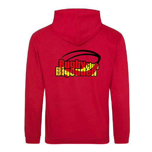 Capuche doublée. Poche kangourou. Double coutures. Cordons ton sur ton. Poignets et ourlet en bords côte. Étiquette détachable.